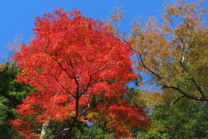 快晴の一日、紅葉を楽しみながら丸岡山から夷守岳まで、13人の仲間と歩いてきました。