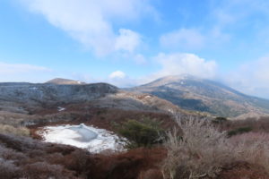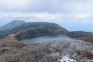 展望台手前から上は雪が残り、樹氷がきれいでした。