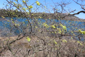 快晴のため湖面の色も素晴らしく、キリシマミズキやオオカメノキの花も鮮やかでした。