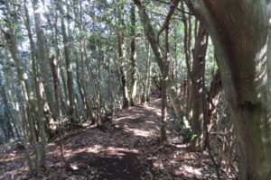 山頂から気持ちの良い縦走路を進み、カブトムシ岩に到着。