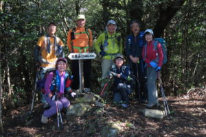すべらないよう慎重に登って花尾山山頂に到着。金峰山や野間岳など、南と西の展望を楽しみました。