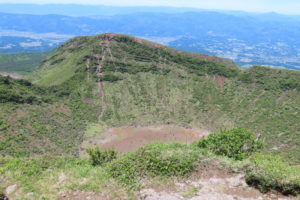 えびの高原池巡りルートから硫黄山の北側を回り込んで北峰に登り、本峰に登ってから下る。