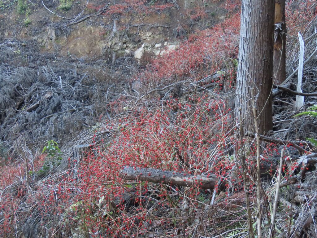 下りの林道が荒れていたため、持参ののこぎりで片付けつつ進みました。