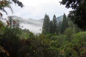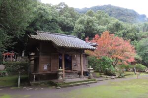 1時間半で牟礼ヶ岡の登山口に着き、少し先の入口から心岳寺に急坂を下りました。