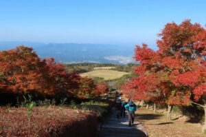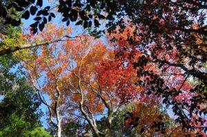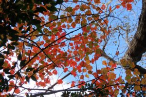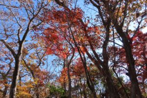 午前中は快晴で、カエデやマユミなどの紅葉とシロモジやブナの黄葉が青空に映え、美しいでした。