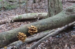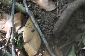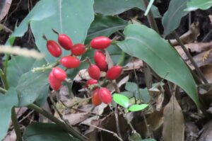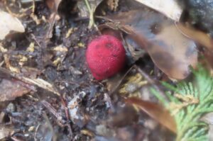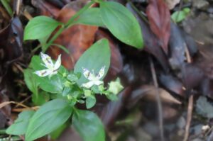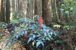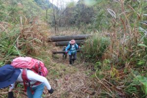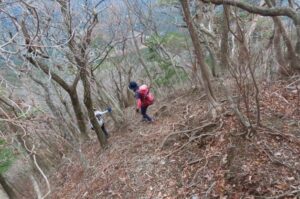 少し戻って急斜面を登り、林道に戻って昼食後、同じ道を下りました。