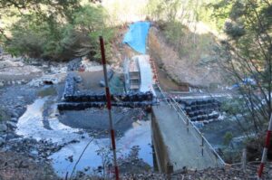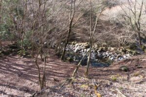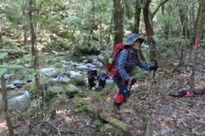 途中で橋のたもとから夷守大滝を目指して沢沿いに登りました。