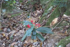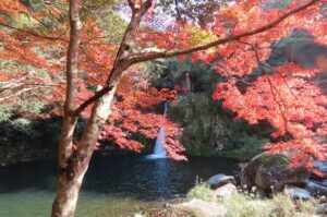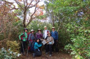 群生地でヤッコソウを鑑賞して、尾根歩きを満喫し、下山後観音滝公園で滝と紅葉を楽しみました。