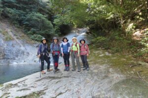 快晴の一日、6人のメンバーで鹿屋市吾平の中岳と神野渓谷を歩き、ヘツカリンドウと滝を楽しみました。