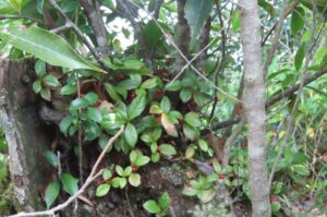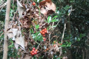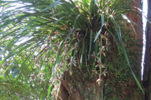 下山後に南大隅町根占の諏訪神社に寄り、境内の大木に着床したヘツカランを鑑賞しました。