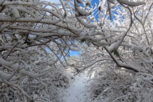 とんがり山を越えるあたりから積雪があり、新雪を踏みしめての登山でした。