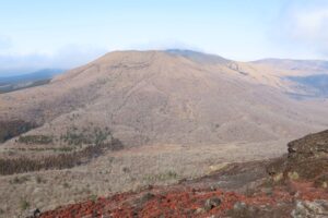 白鳥山から六観音池に進み、谷を越えて甑岳に登り、火口壁を周回。