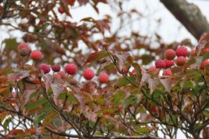 ヤマボウシの大きな赤い実も沢山見られ、手の届くものは少し味わうことができました。