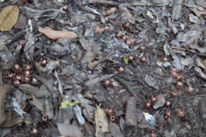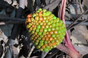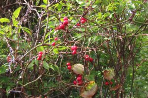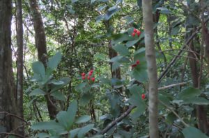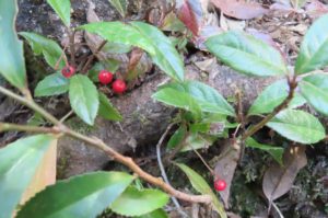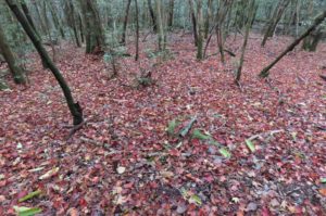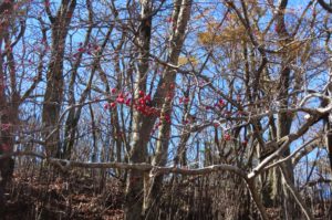 沢が広く分岐する地点から南に伸びる尾根を登ると、多くのヤマボウシが沢山の赤い実を付けていました。