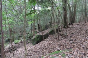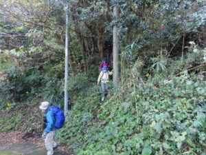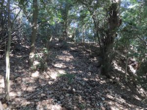 愛宕神社(摩利支天宮)から北へ藪漕ぎでアップダウンを繰り返し、吉野街道脇に下りました。