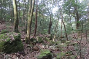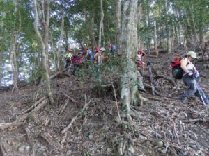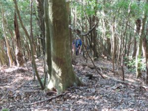 テープに従ってオモトの多い森を抜け、一般登山道に出ました。