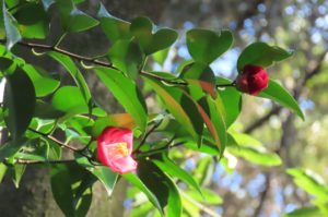 山茶花の花が多く、青空に白い花が良く映えていました。