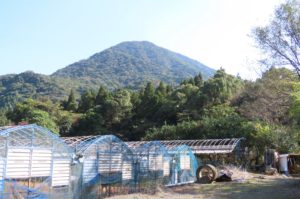 下山は苔むした原生林を抜け、牧場脇を通って、タブノキの巨木から車に戻りました。