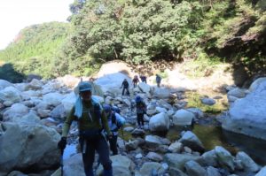 大幡沢に注ぐ沢の終わりからしばらくは涸れ沢が続き、水のない沢登りでした。