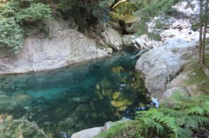 やがて水流が出て、細い流れの渡渉を繰り返し登るとまた水がなくなりました。