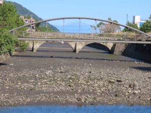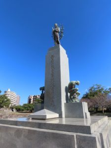 公園の石橋や記念碑を回ってから防波堤で海を眺め、駐車場に戻って解散しました。
