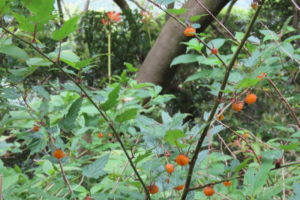 11日は予想外の雨で、急遽小屋の裏手のカエデの大木の前で線香と焼酎三岳でお二人のご冥福を祈りました。
