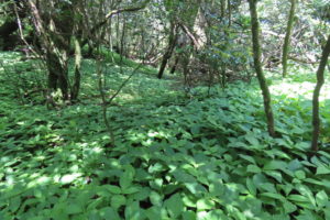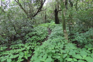 アバンダントの森の静かな登山道を快調に進むが、メンバーの一人が体調不良となり、別ルートで登山口へ戻りました。