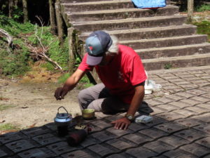 淀川小屋で一緒だった長谷川さんが野点の用意をしておられ、生まれて初めて正式なお茶を頂きました。