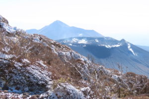 前日のえびの高原のライブカメラで2合目から上は雪が積もっていたので、雪を覚悟して出発しました。