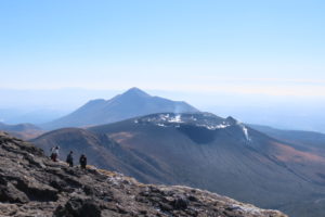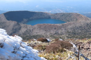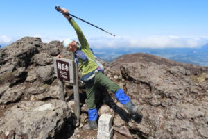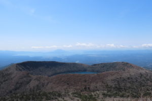 韓国岳避難小屋で昼食後、韓国岳に登りえびの高原へ下りました。