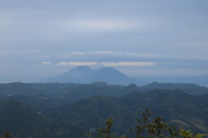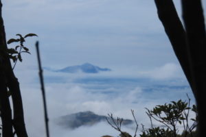 下山するまですっきりとは晴れませんでしたが、山頂では雲海の上に桜島や妻岳御岳などの山頂を望めました。