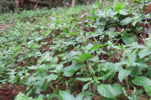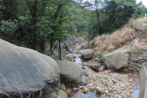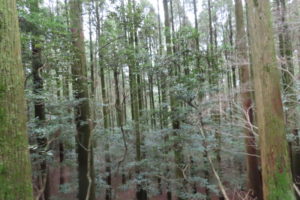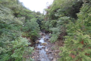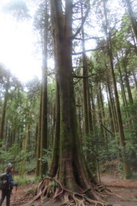 河原までは、杉・ヒメシャラ・ユズリハをはじめいろんな種類の樹木の森が続きました。