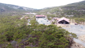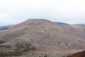 晴れの予報でしたが、えびの高原は強風が吹き、山はガスに覆われていました。
