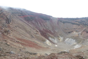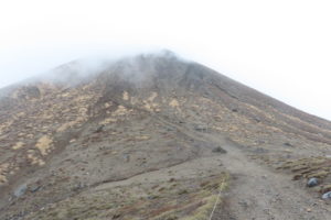 高千穂河原からさらに登ると残念なことに次第にガスが出始めました。