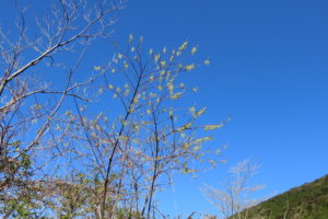 マンサクの花を観賞するため高隅山に3人で登りました。