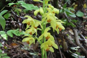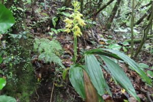 昨日の雨で山は湿った空気が漂ってい8合目の岩場を越えたあたりに、お目当てのガンゼキランが咲いていました。