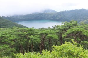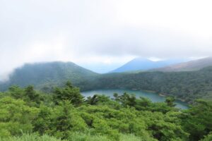 大浪池の湖の色は灰が投入され、ターコイズブルーが濃くなっているようでした。
